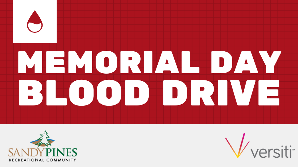Give back this Memorial Day Weekend by participating in our Blood Drive at Sandy Pines. Donating blood is a simple way to make a meaningful impact and help those in need.