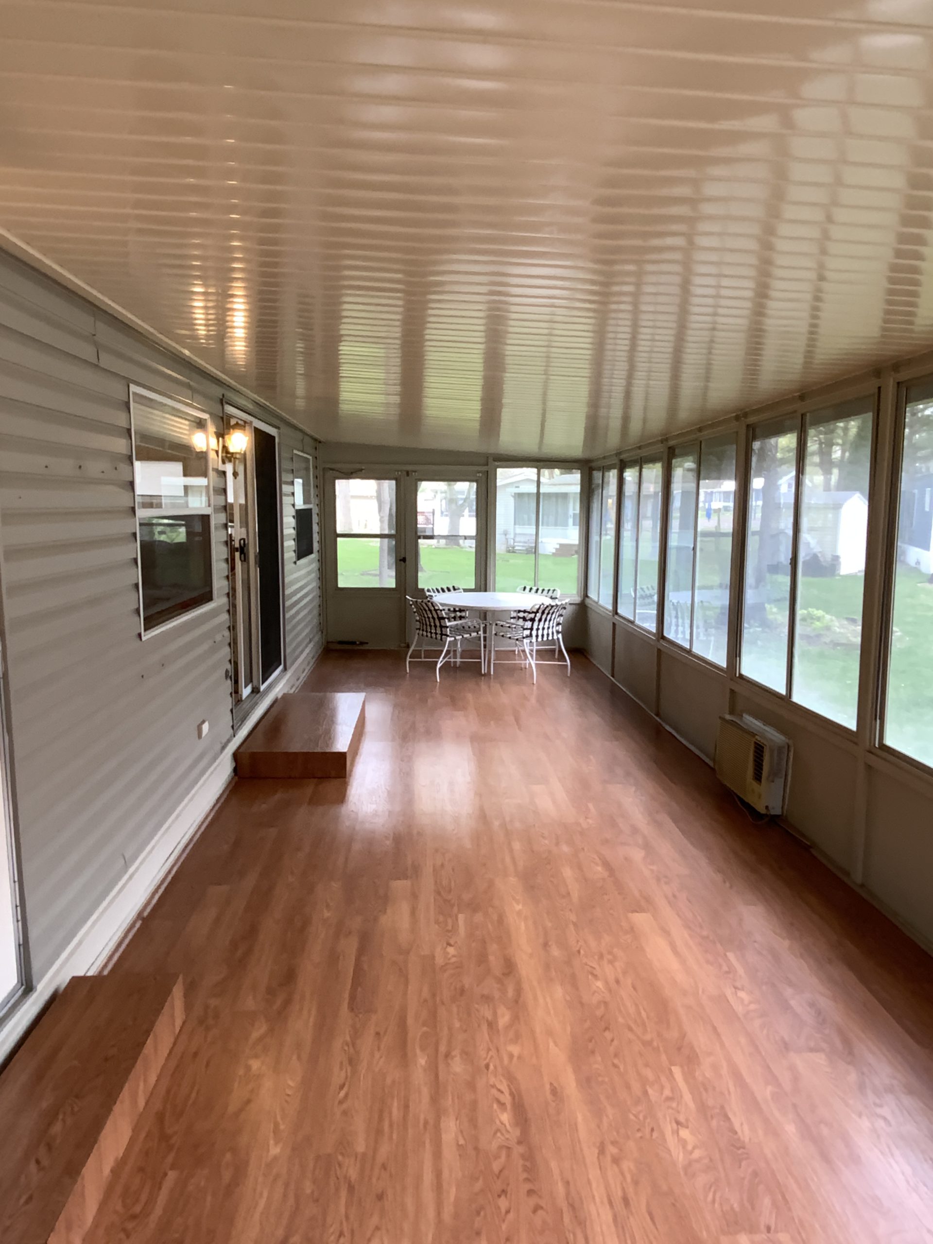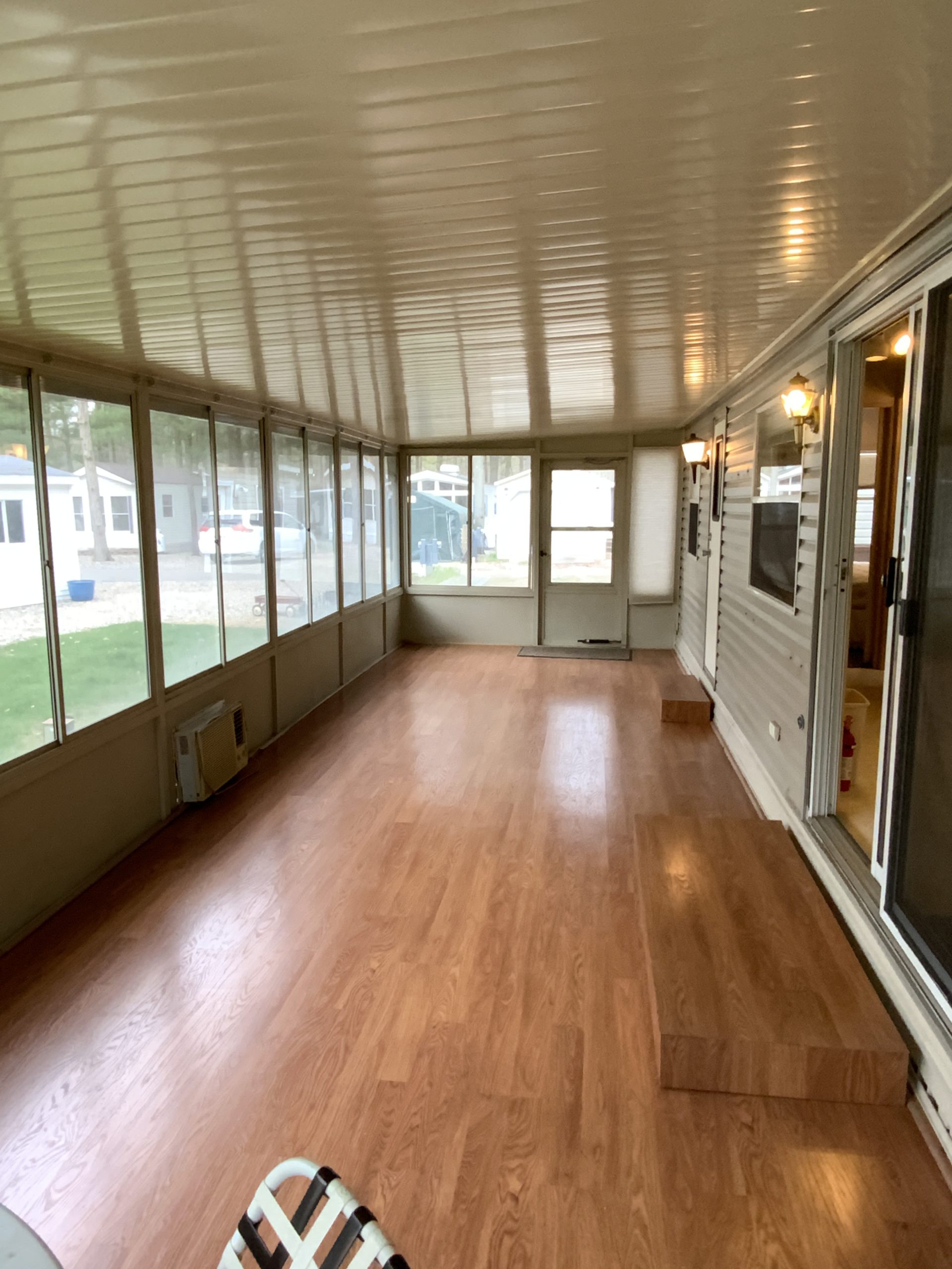 The home features a spacious 10×30 attached porch with laminate flooring, perfect for relaxing or entertaining. You’ll also appreciate the composite decking on both front and rear entryways and slide windows with custom blinds for added comfort and style.