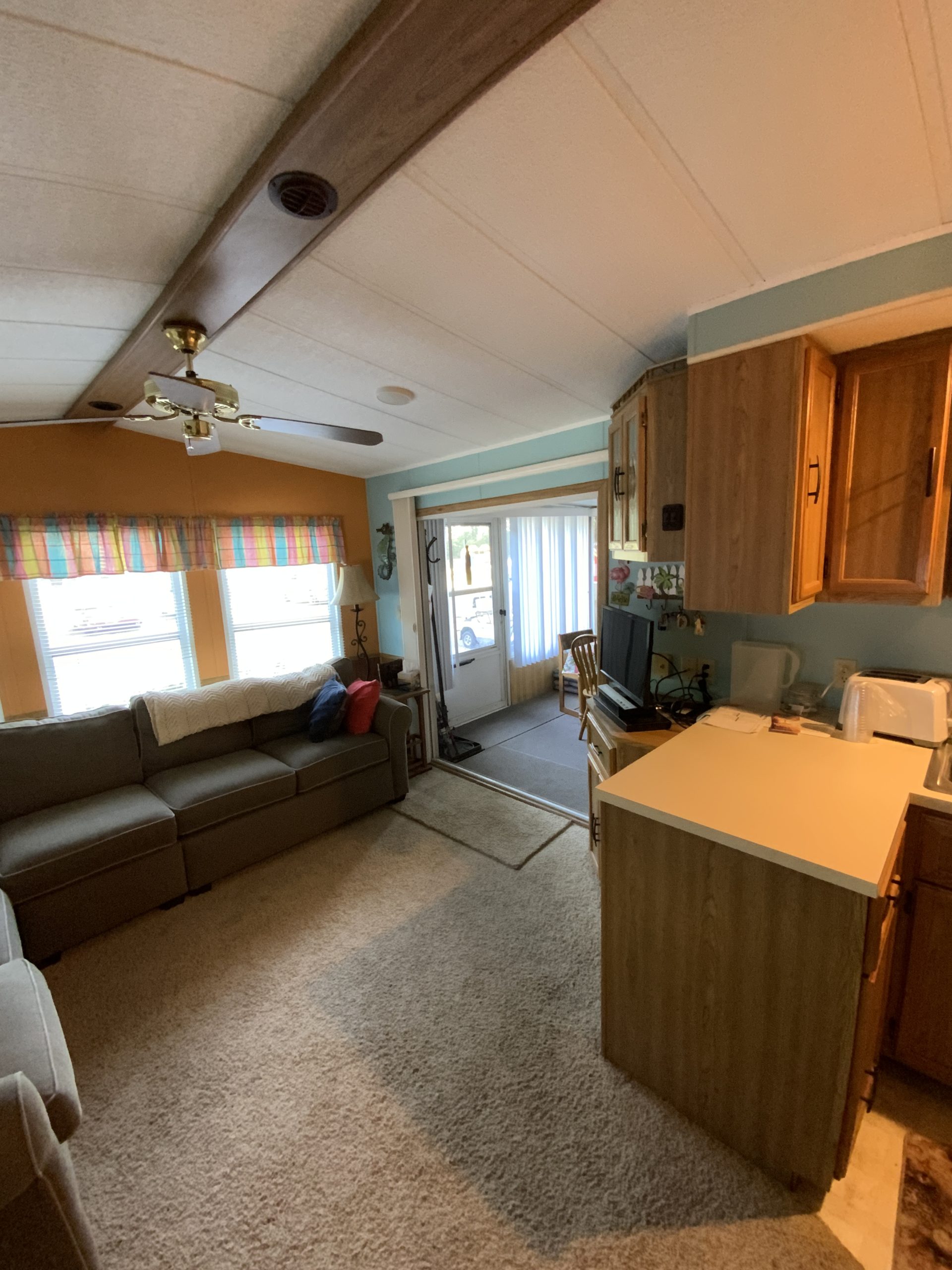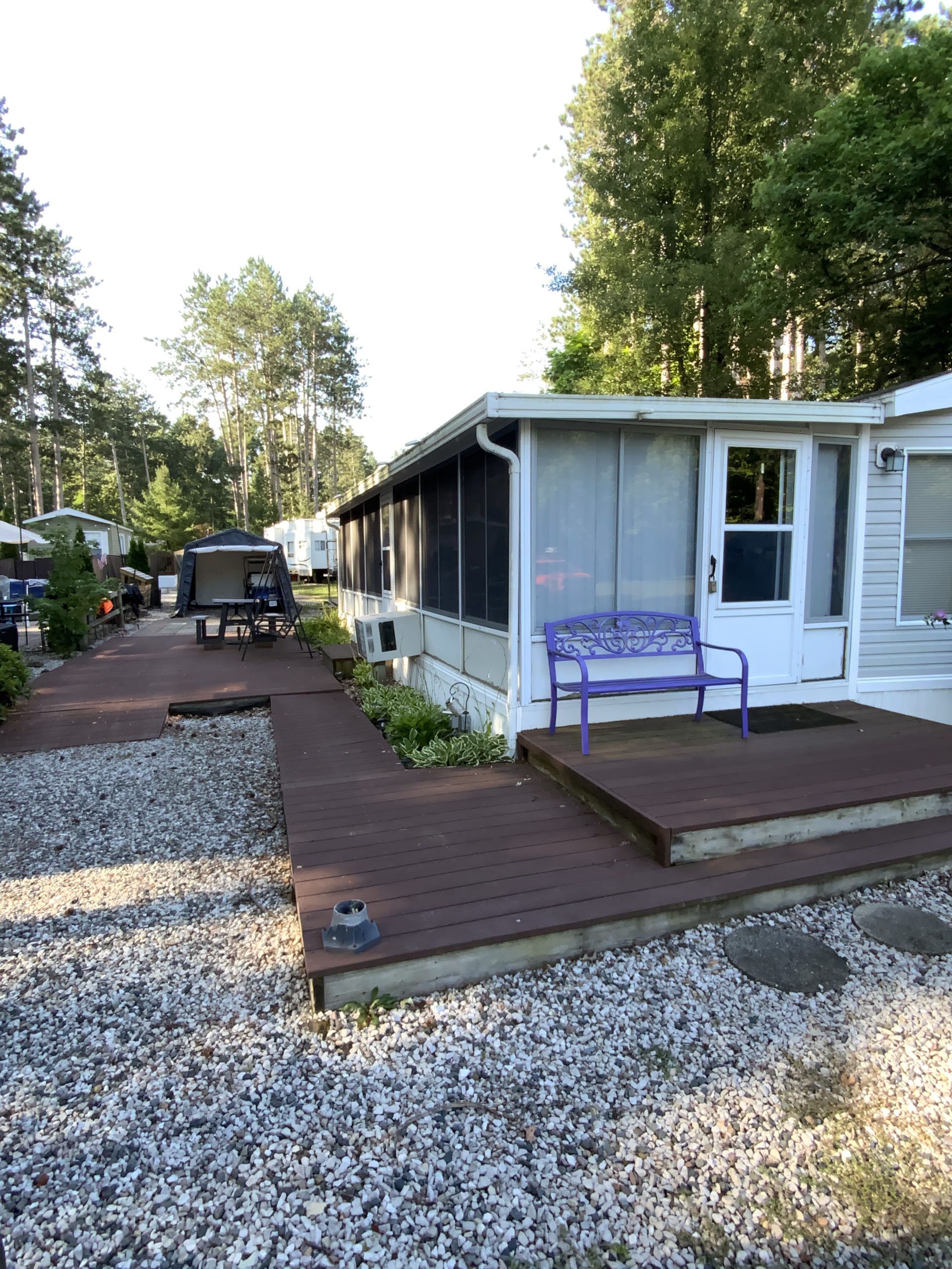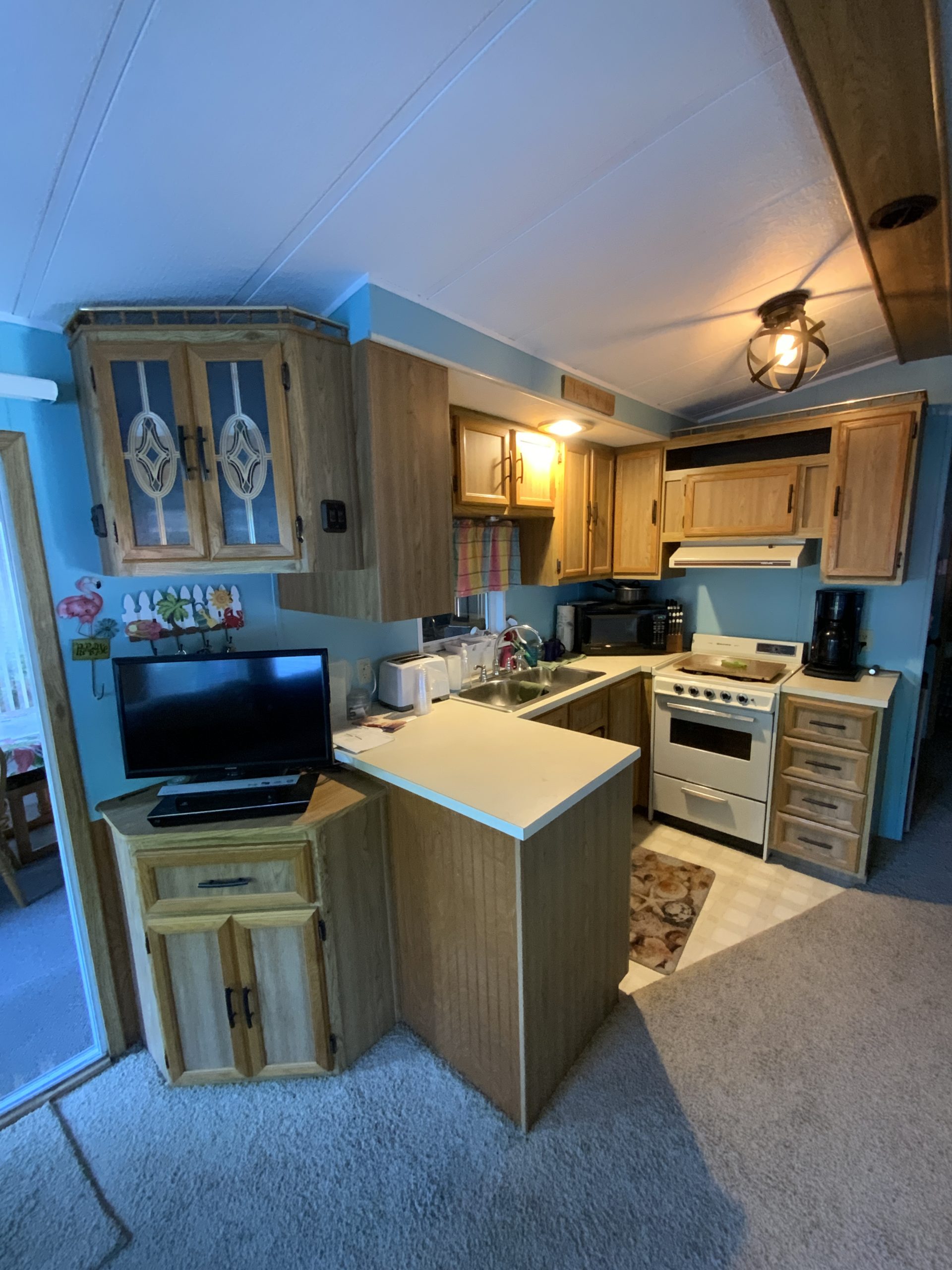 This 1991 Cree Park Model features one bedroom and one bathroom and is perfectly situated in a desirable area of the park. With wide open green space directly across the street, this location offers a spacious, airy feel and is just steps away from the playground, flea market area, and event shelter — making it an ideal spot for both quiet getaways and social weekends.