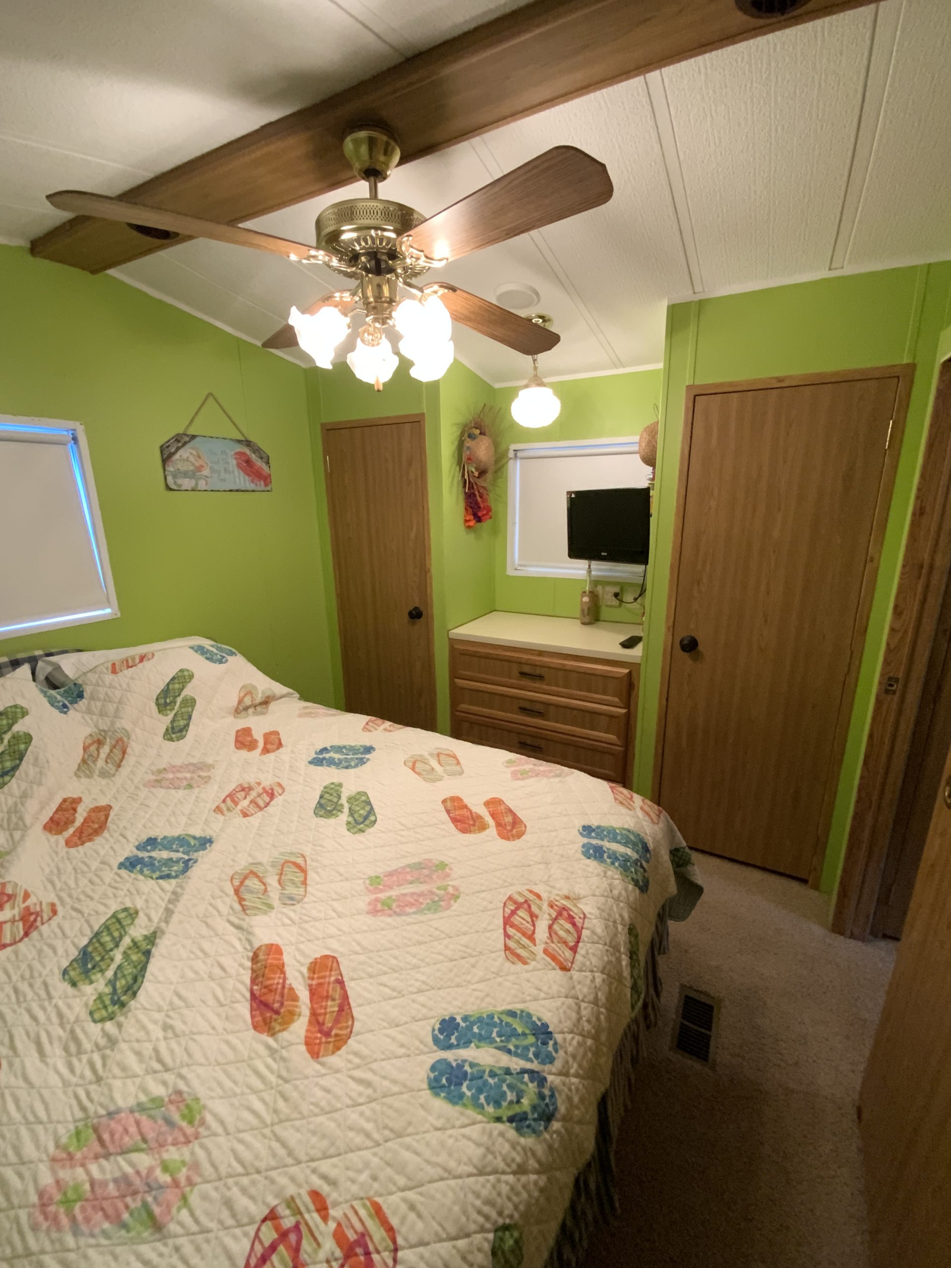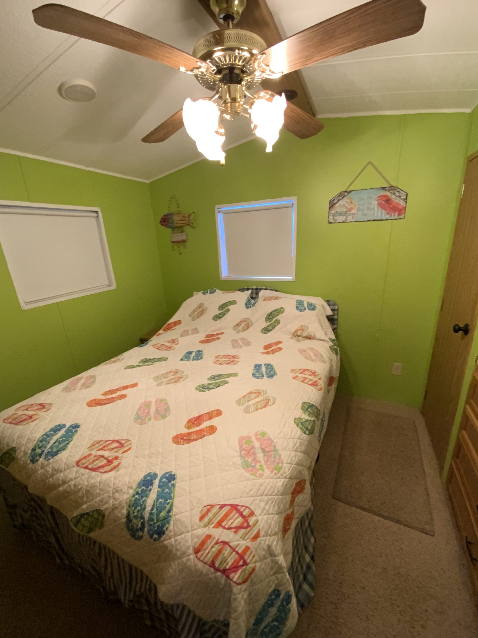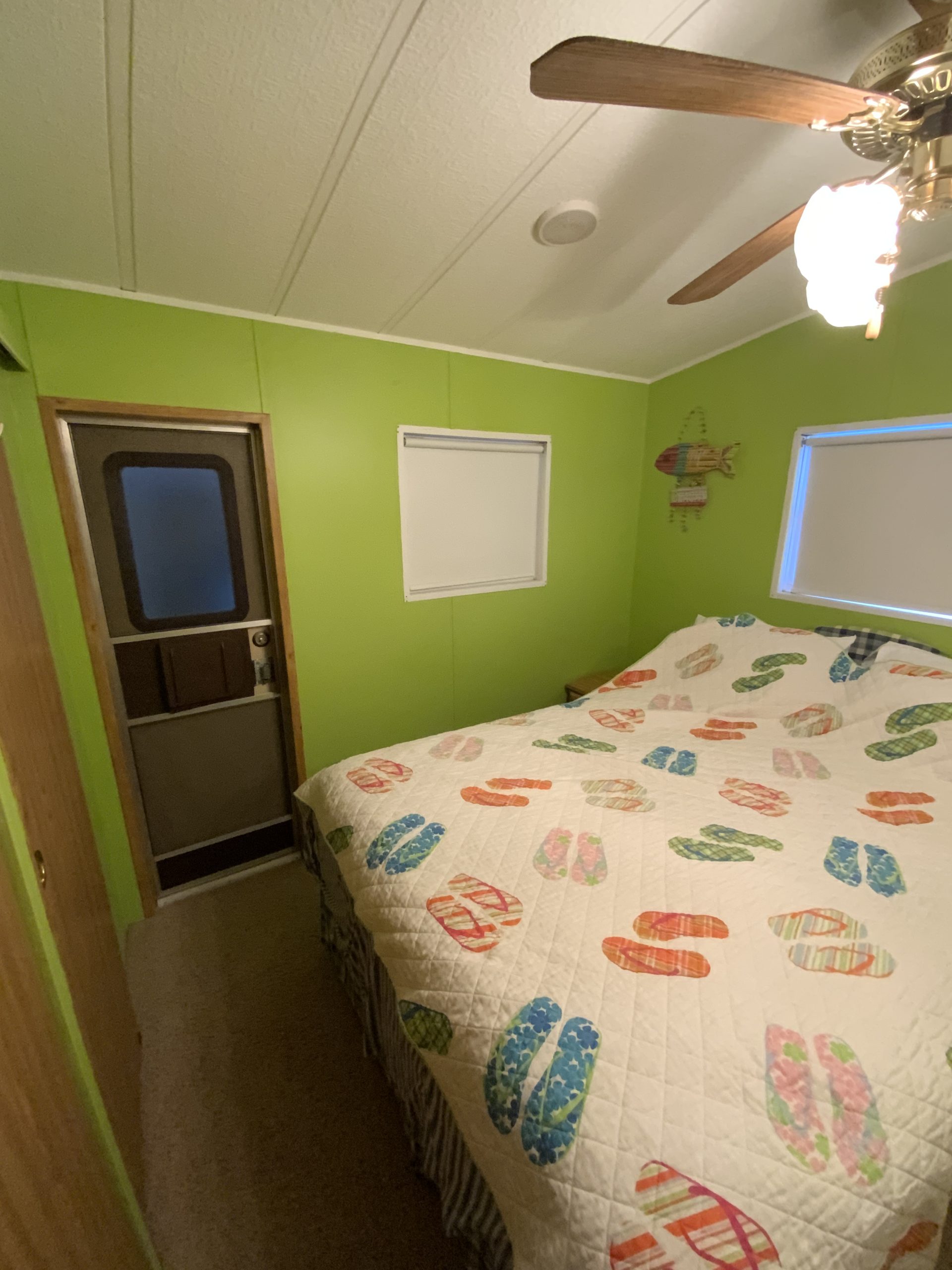 This 1991 Cree Park Model features one bedroom and one bathroom and is perfectly situated in a desirable area of the park. With wide open green space directly across the street, this location offers a spacious, airy feel and is just steps away from the playground, flea market area, and event shelter — making it an ideal spot for both quiet getaways and social weekends.
