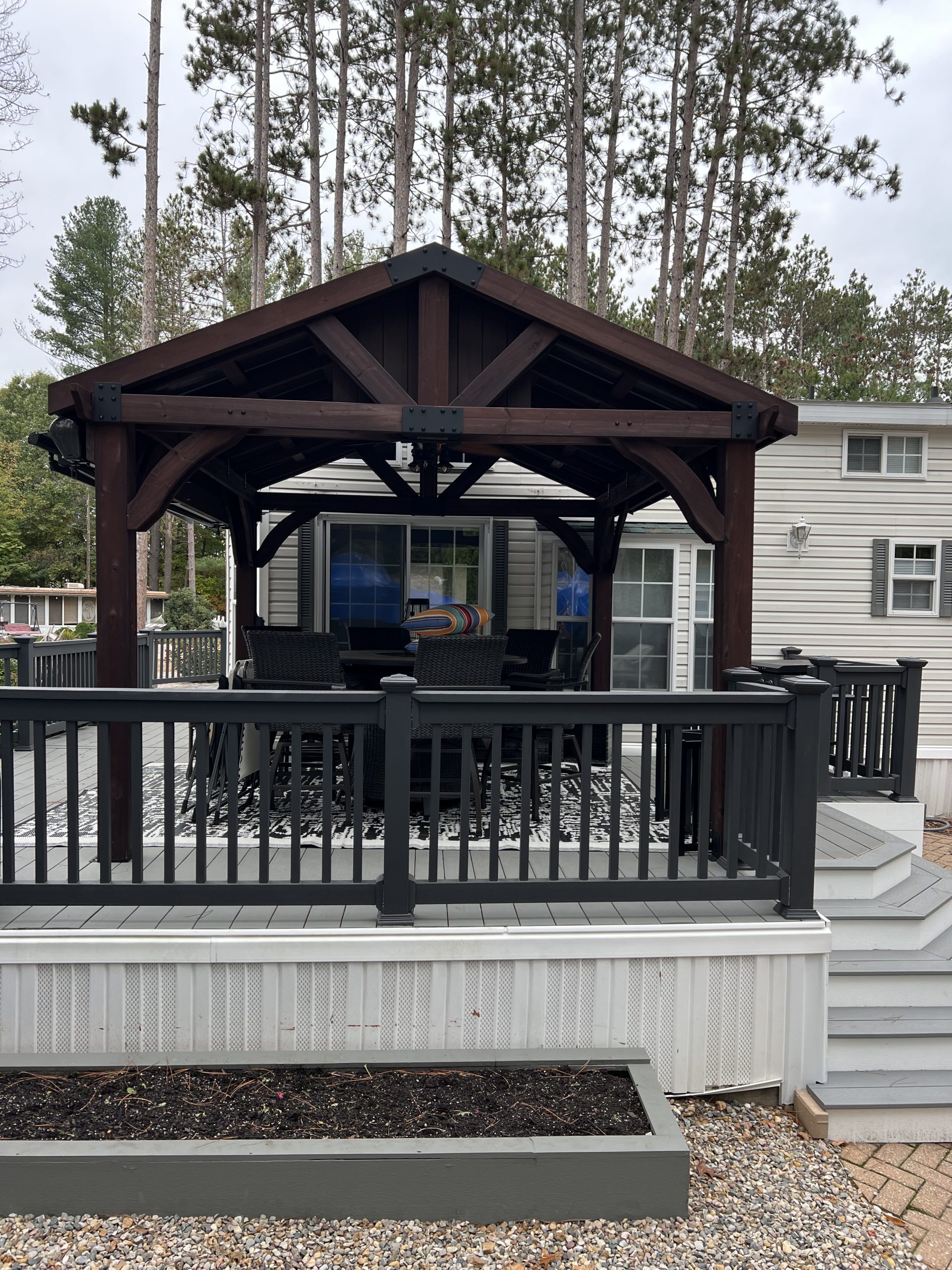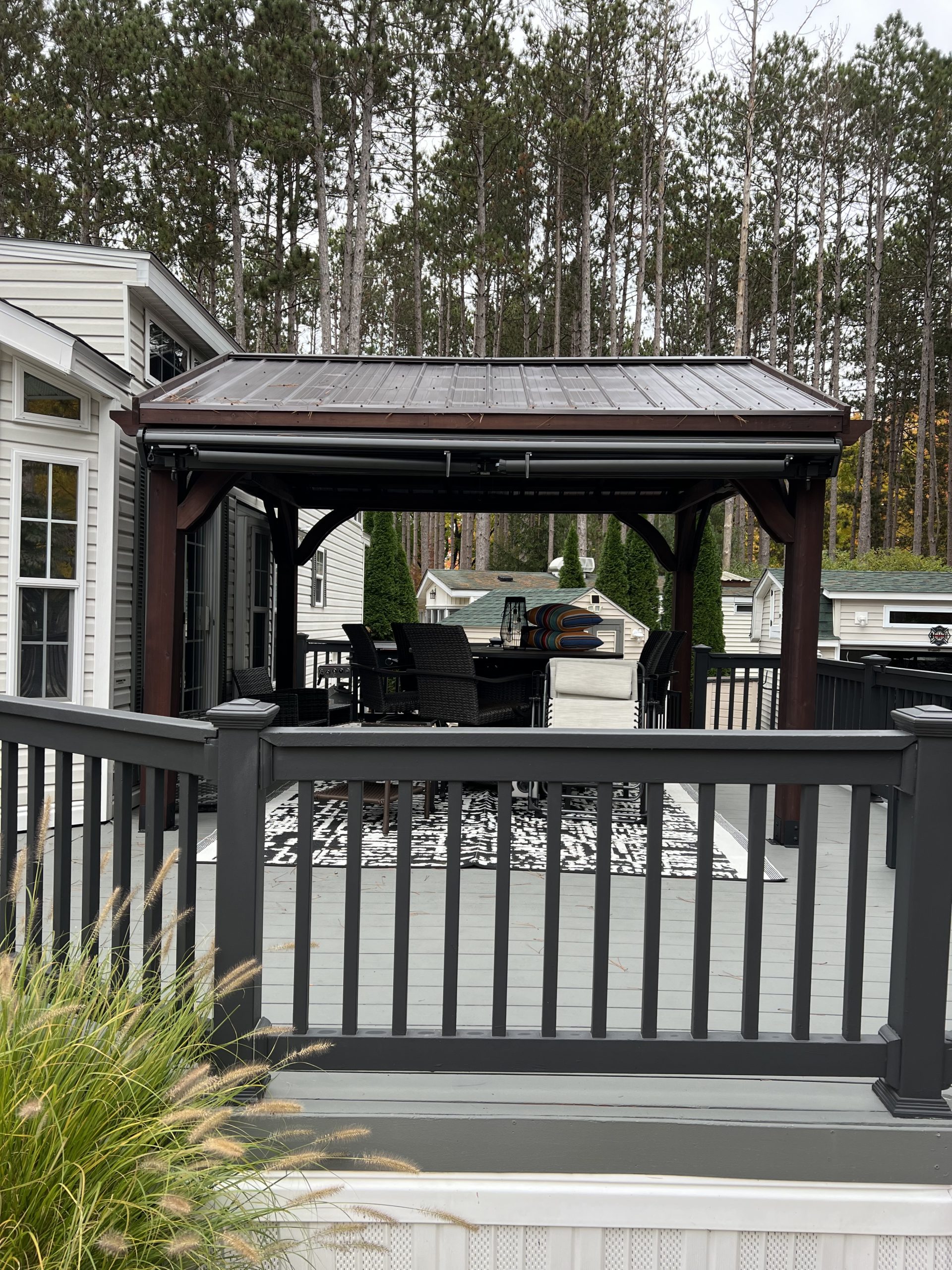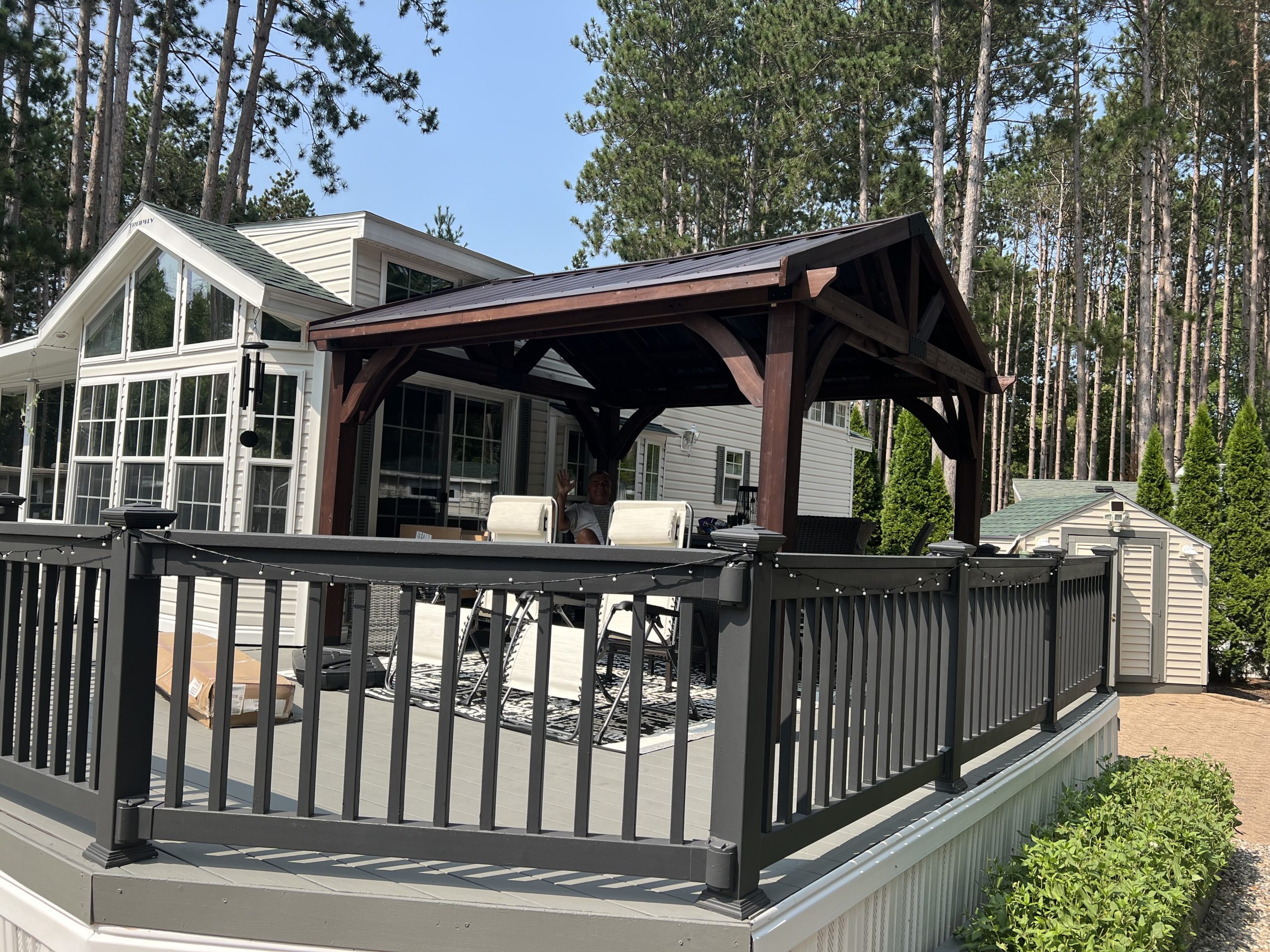 Outside, the lot is beautifully landscaped with decorative stone for a low-maintenance lifestyle, highlighted by a charming pond with fountain, a large brick paver fire-pit area, and a spacious gazebo complete with steel patio table, chairs, and fire ring—perfect for entertaining family and friends. A fully composite deck wraps around three sides of the unit, creating incredible outdoor living space.