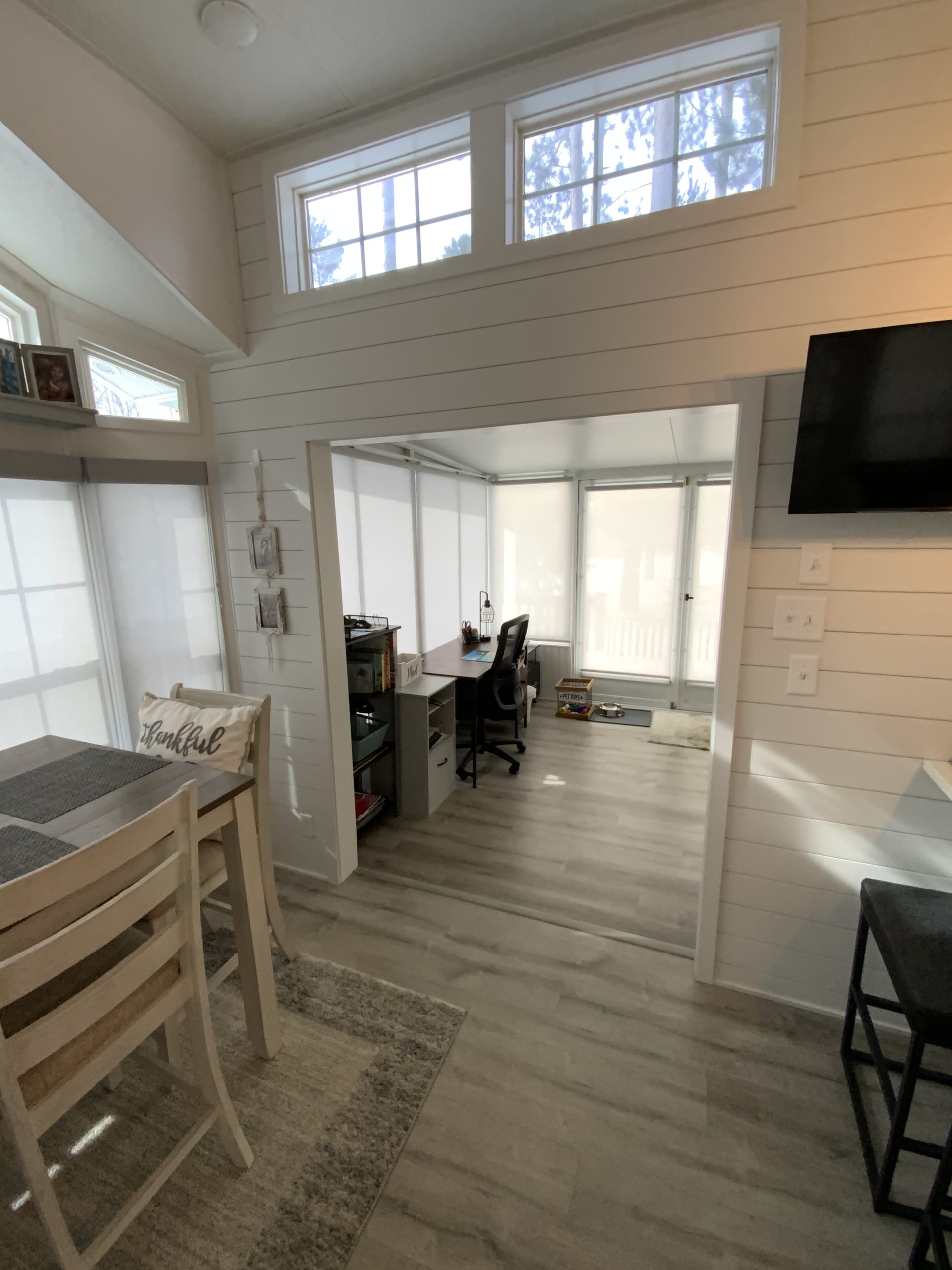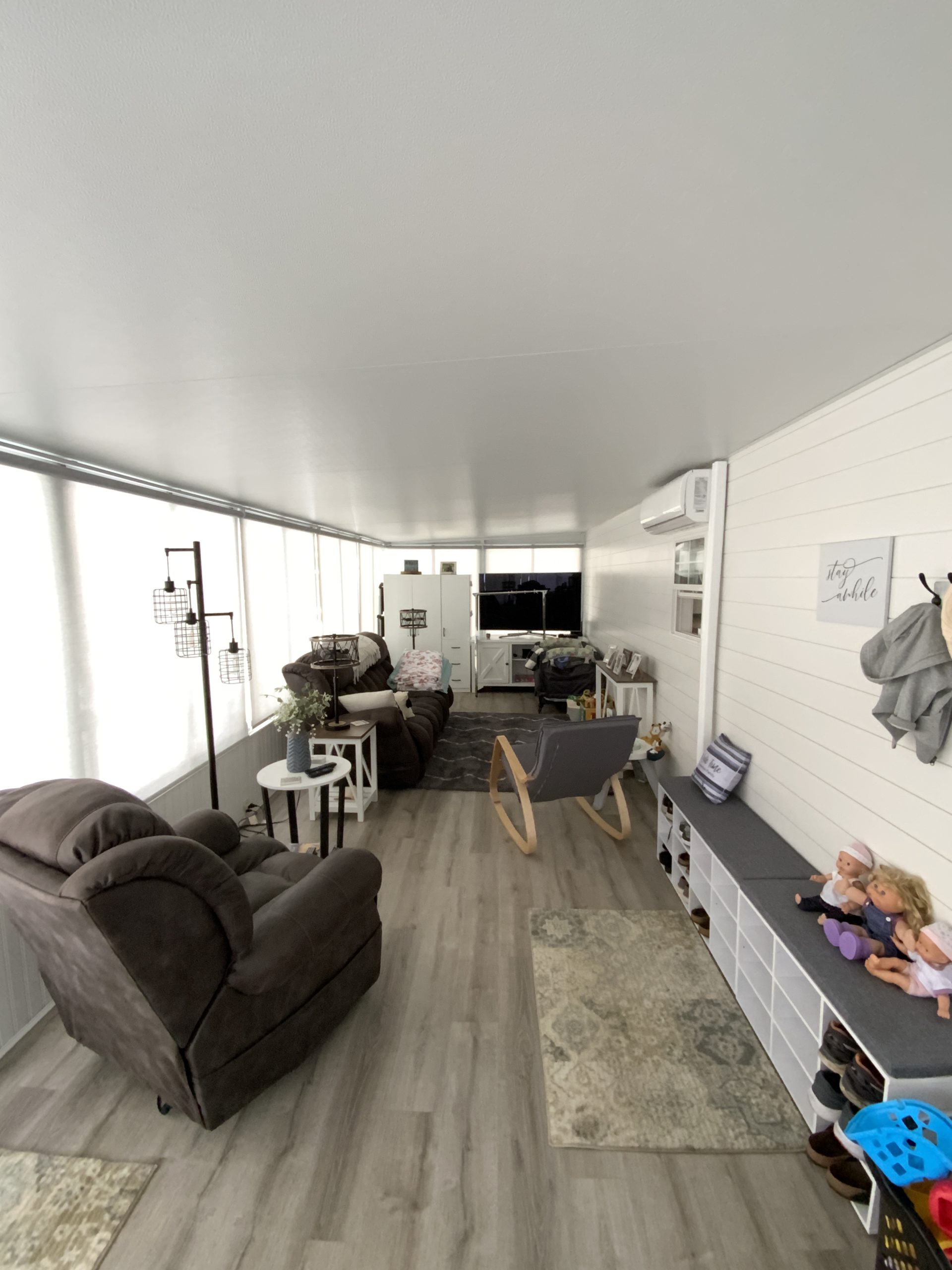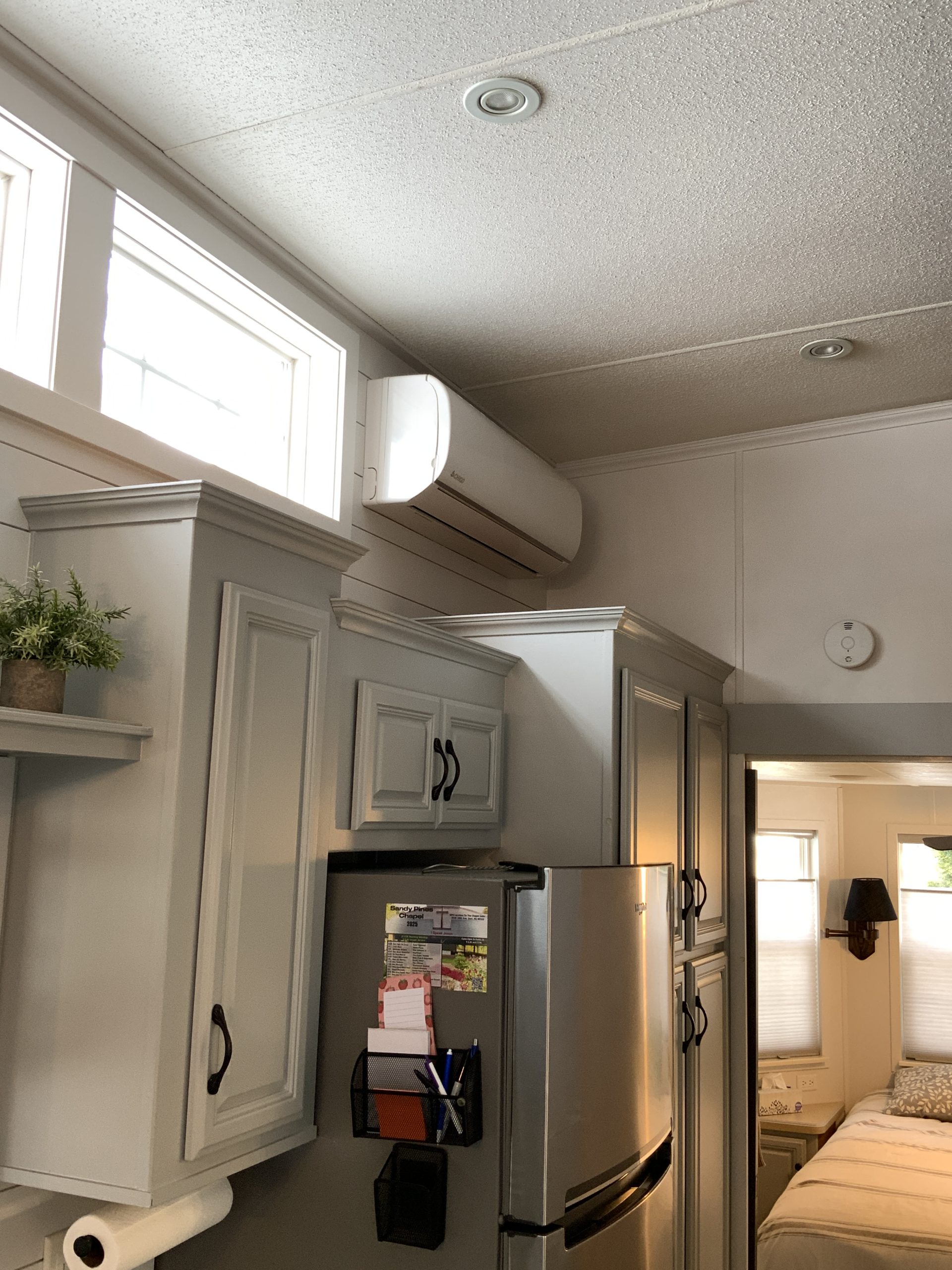 Two mini-split systems providing efficient heat and A/C (one in the porch, one in the unit)