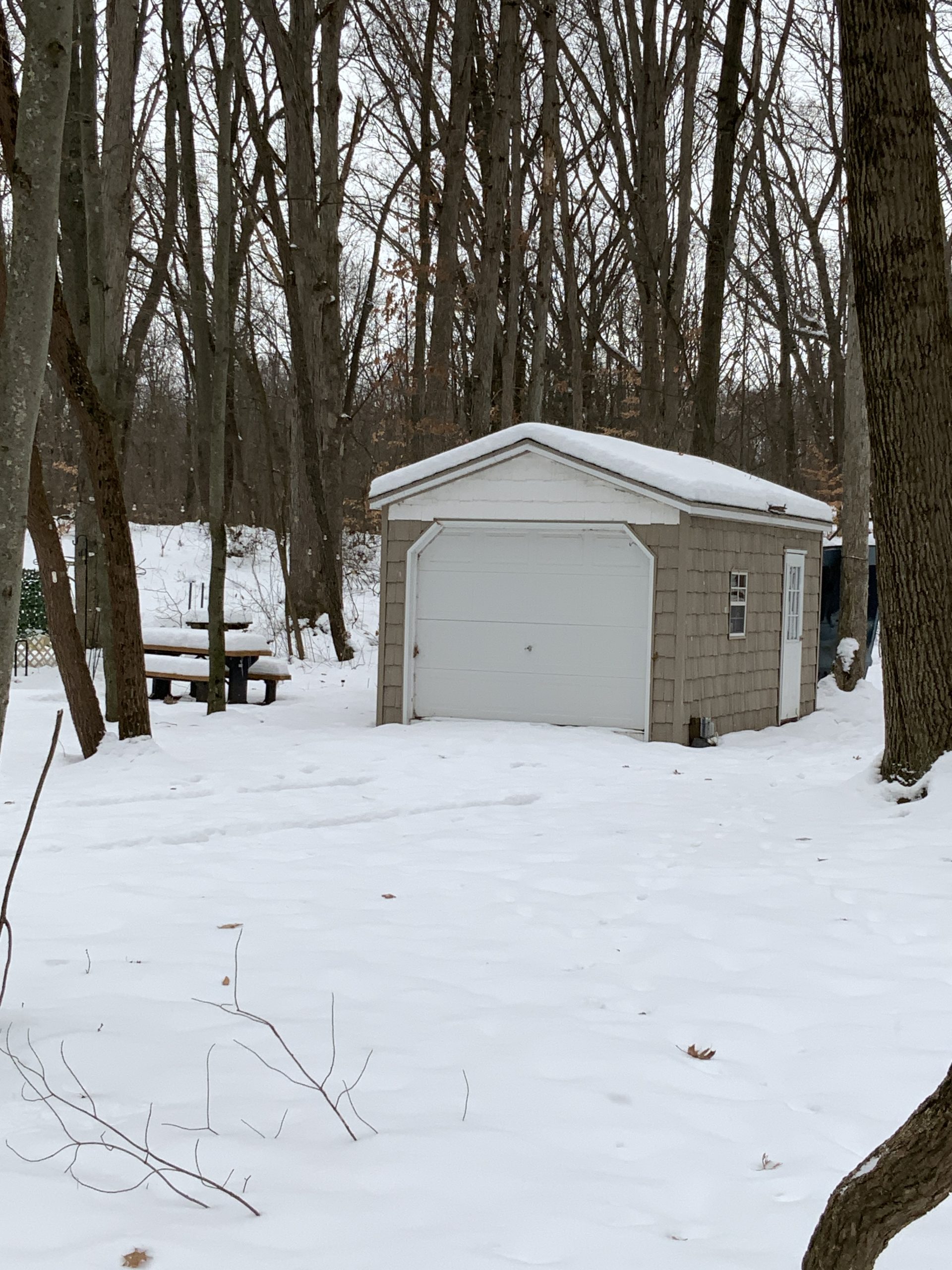 This empty lot comes complete with a garage as well as a golf cart. Enjoy a beautiful setting under a canopy of mature hardwoods, offering shade, privacy, and that classic Sandy Pines atmosphere.