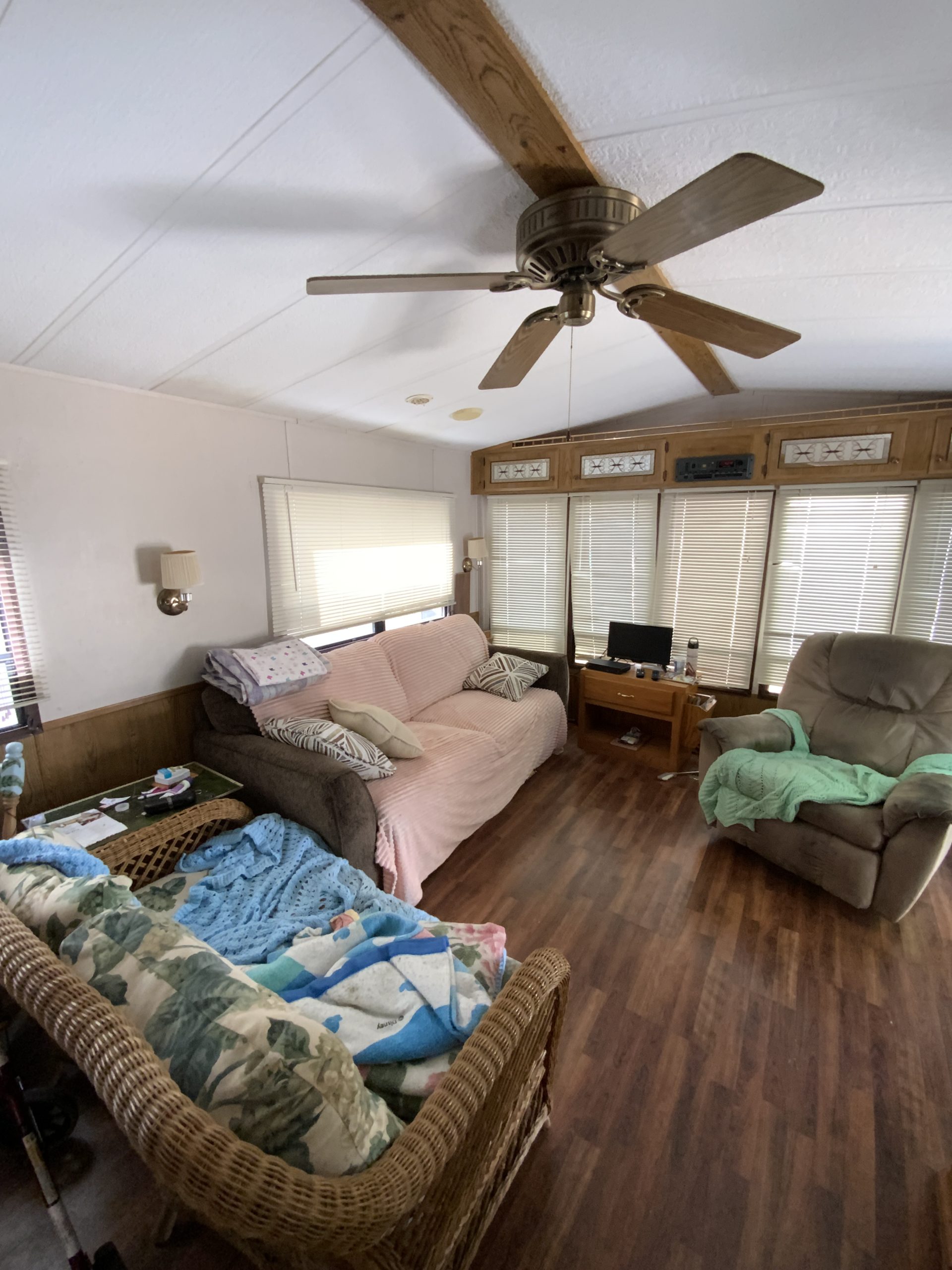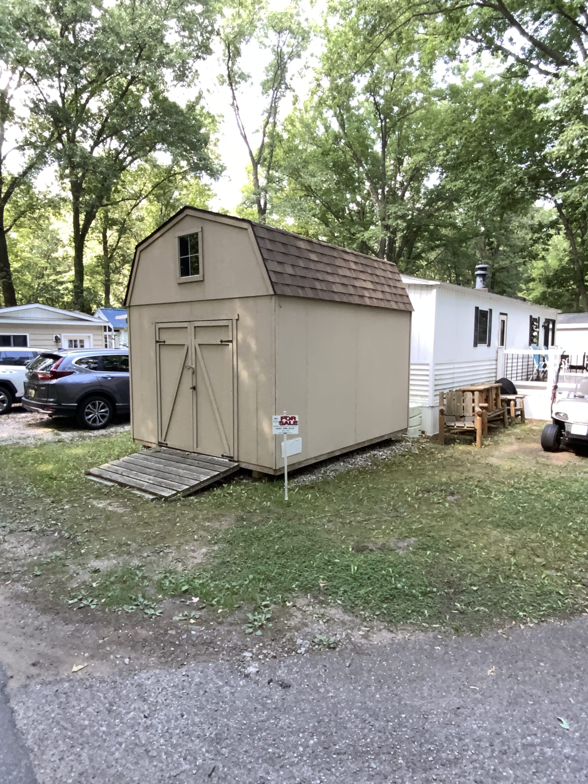 Situated on a corner lot, you’ll have convenient access from two sides, along with a large storage barn for all your camping gear. Also includes a golf cart to access different areas of the park. This unit has been updated with a new roof and new appliances, making it move-in ready.