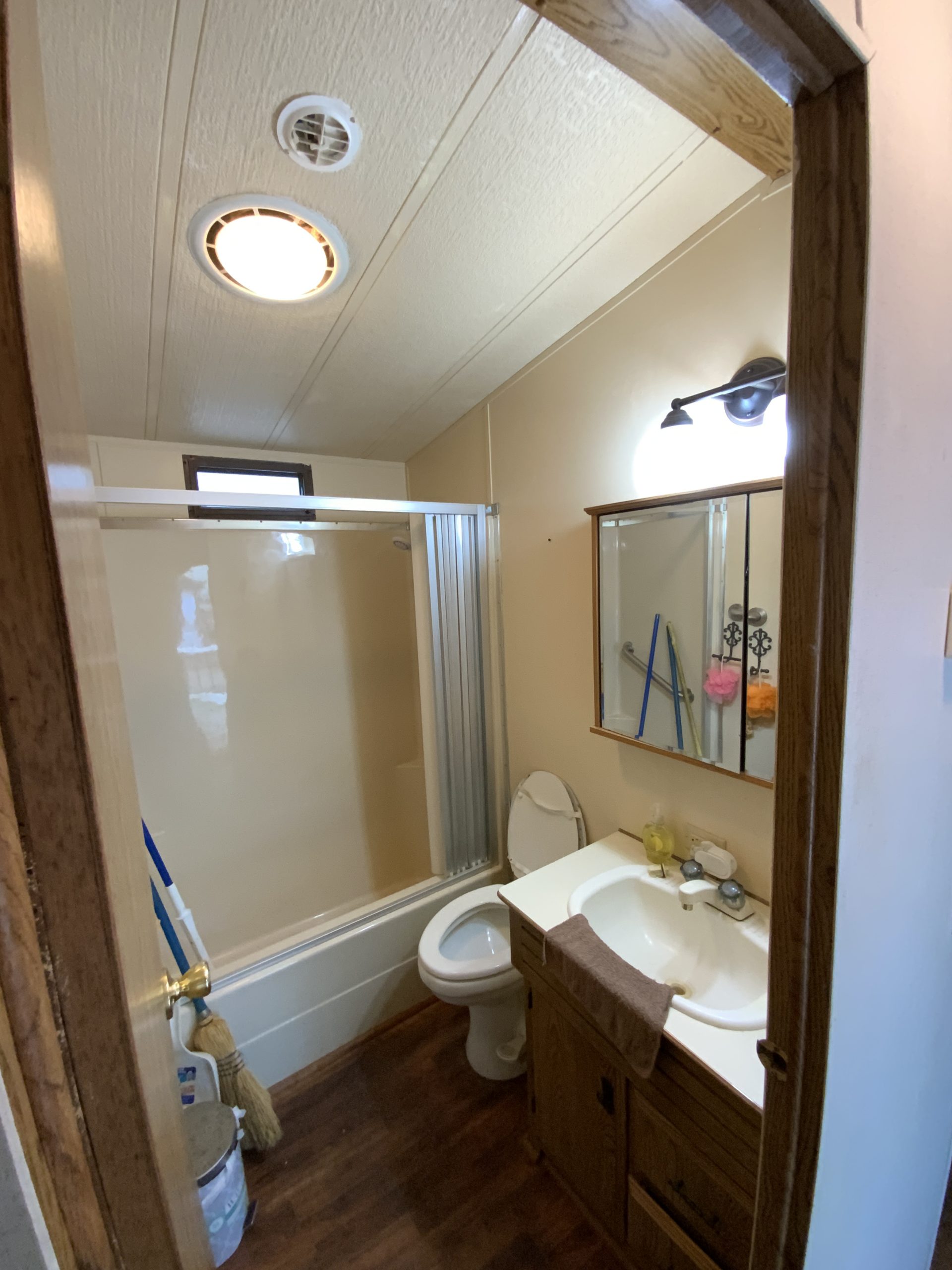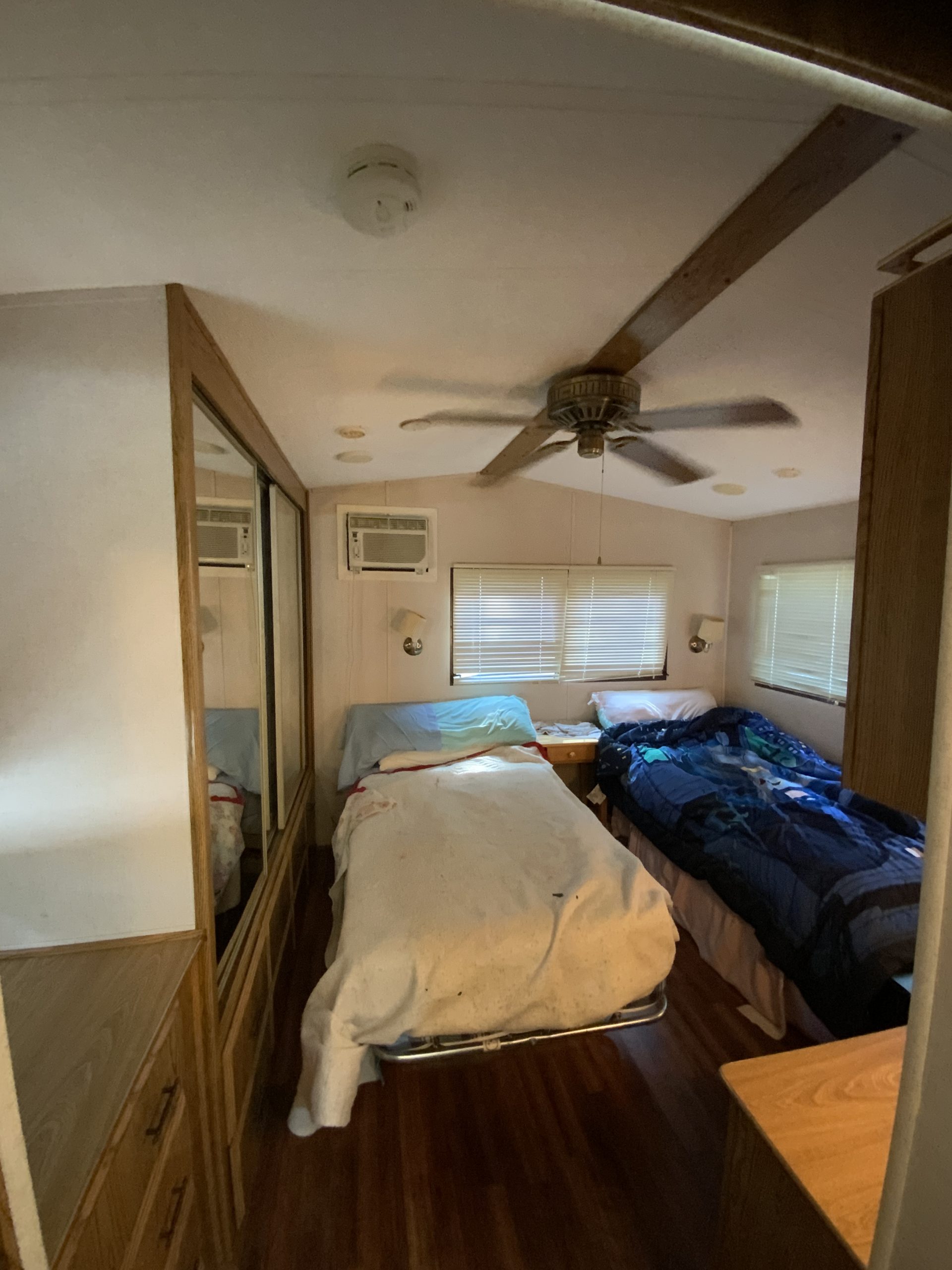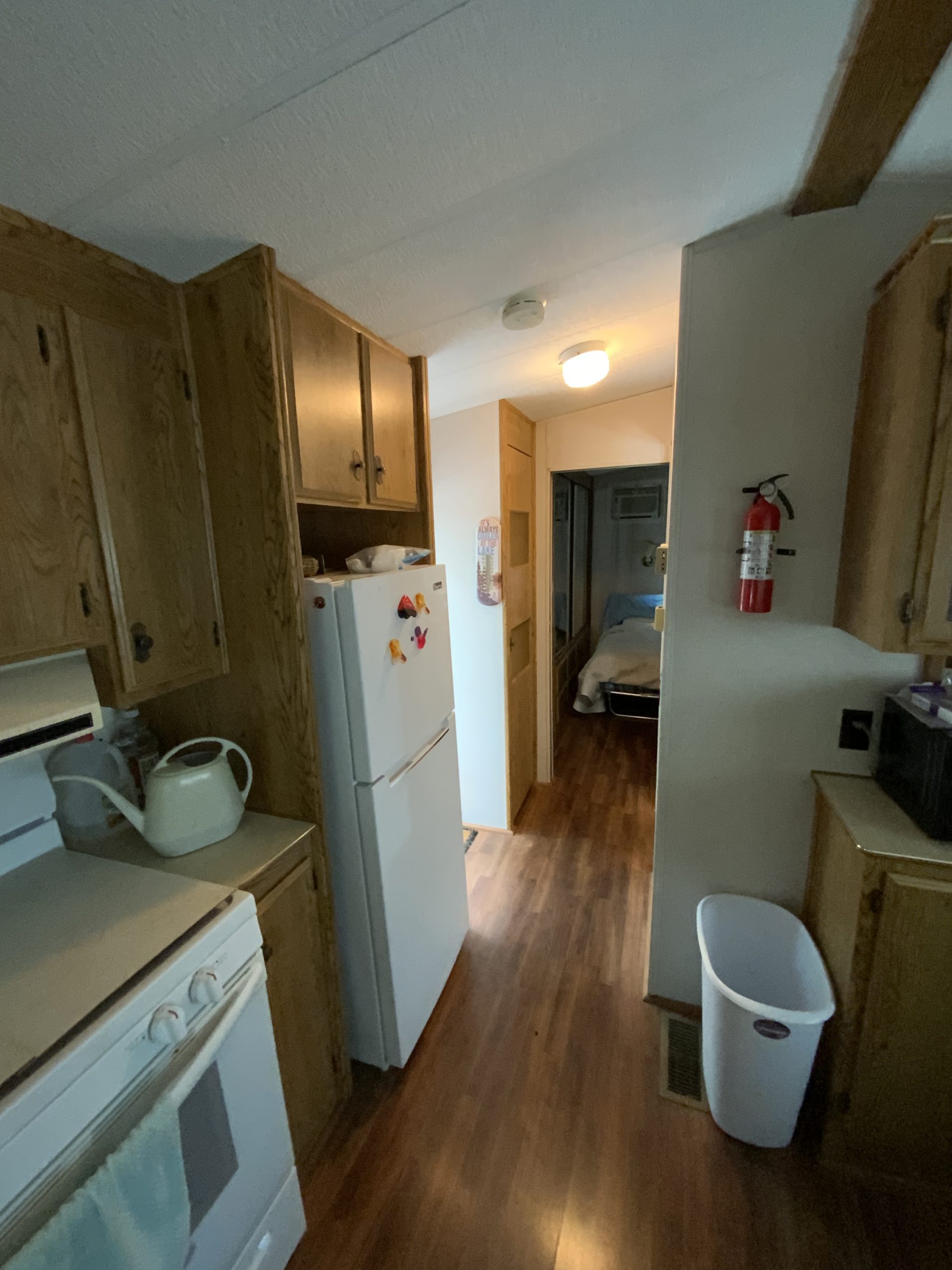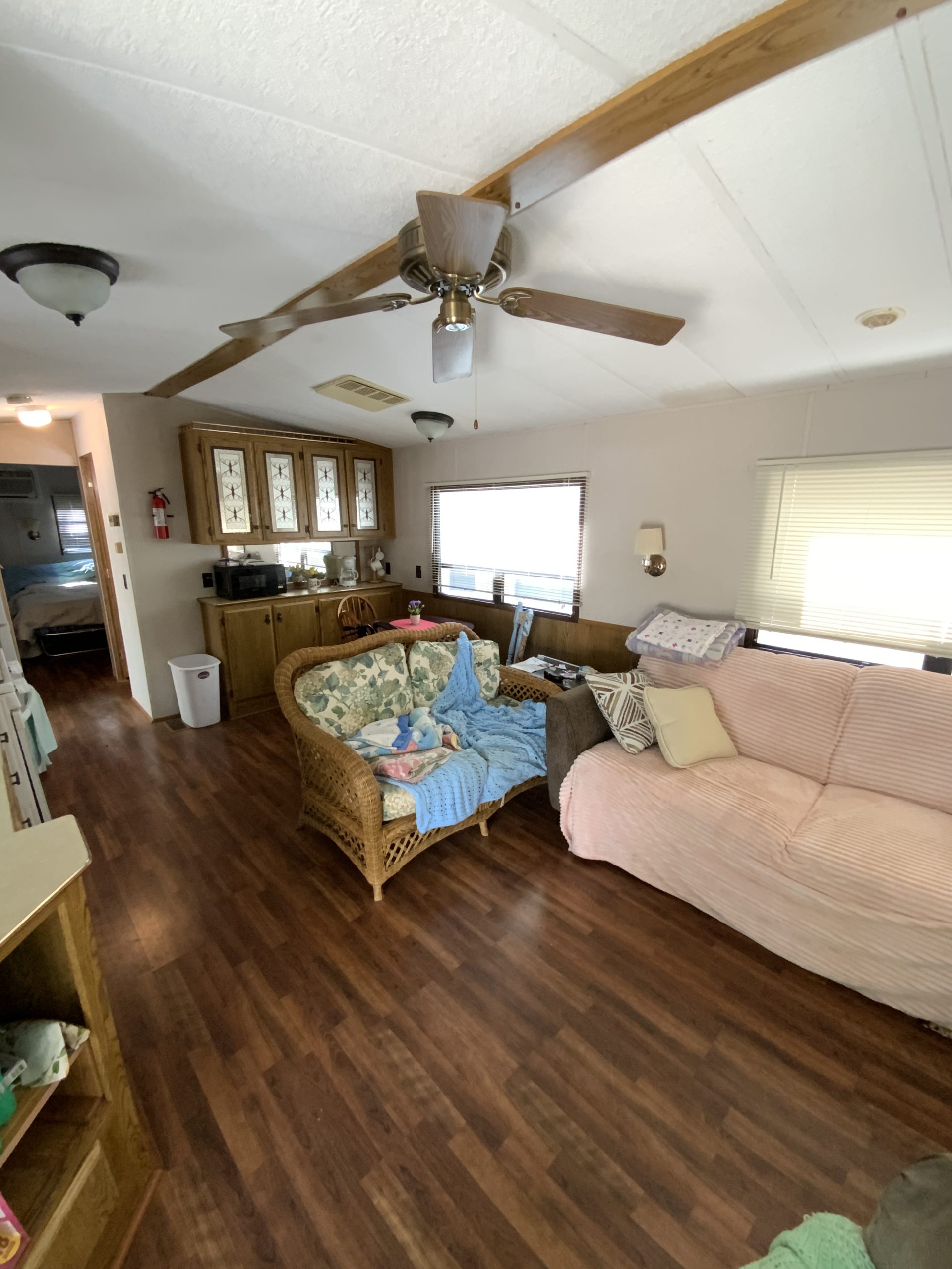 This 1993 Franklin Park model offers one bedroom and one bath in a single trailer setup. While it does not have a porch, it features a composite deck with vinyl railing for low-maintenance outdoor enjoyment.