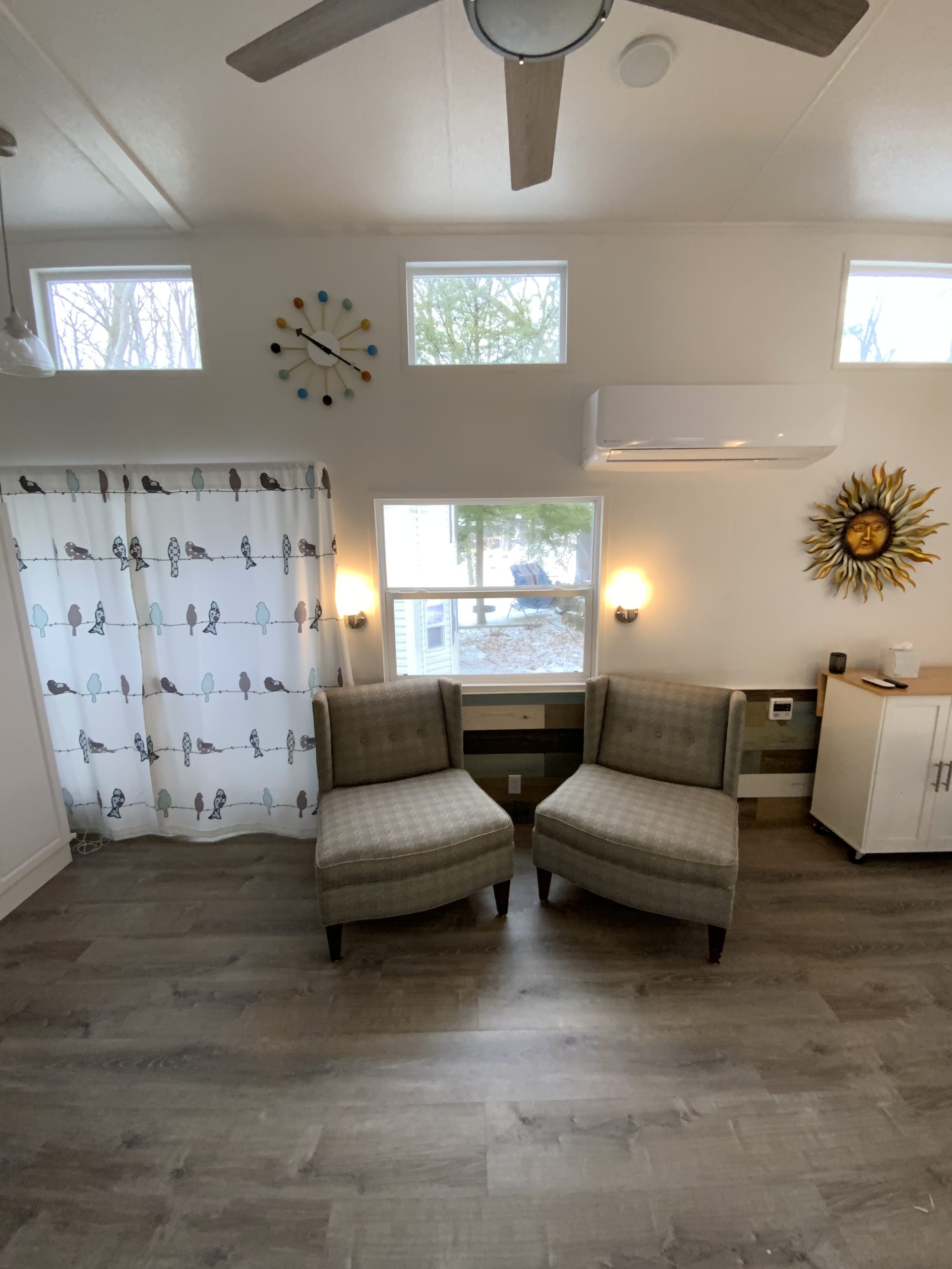 Mini-split systems in both the park model and porch for efficient heating and cooling