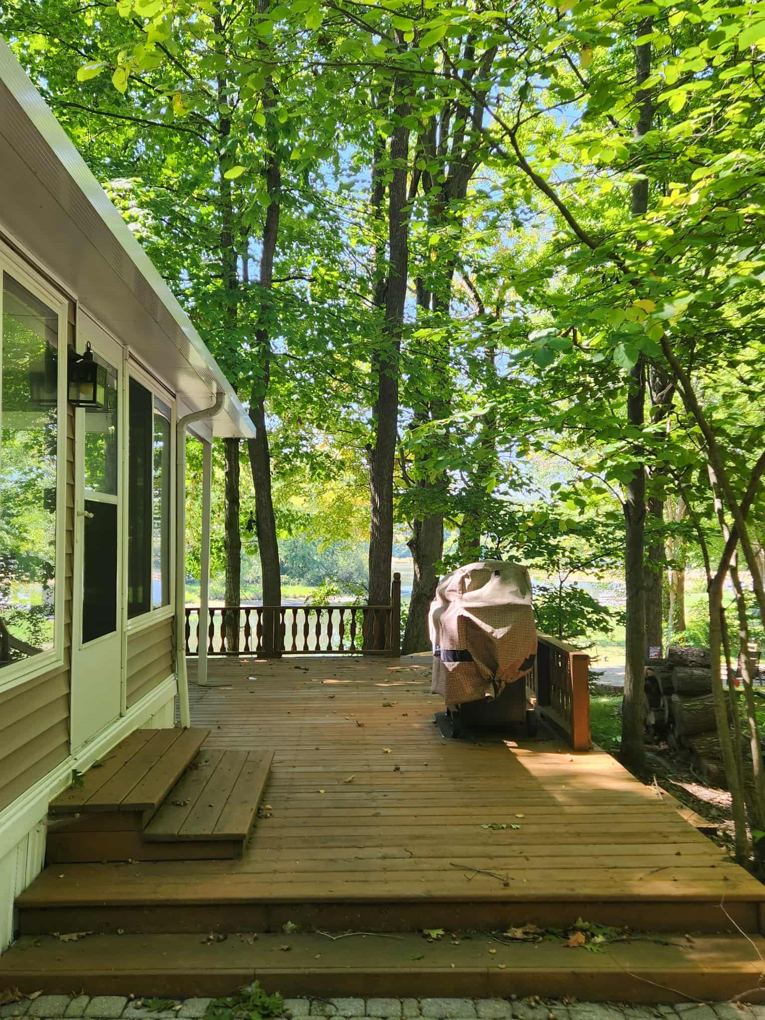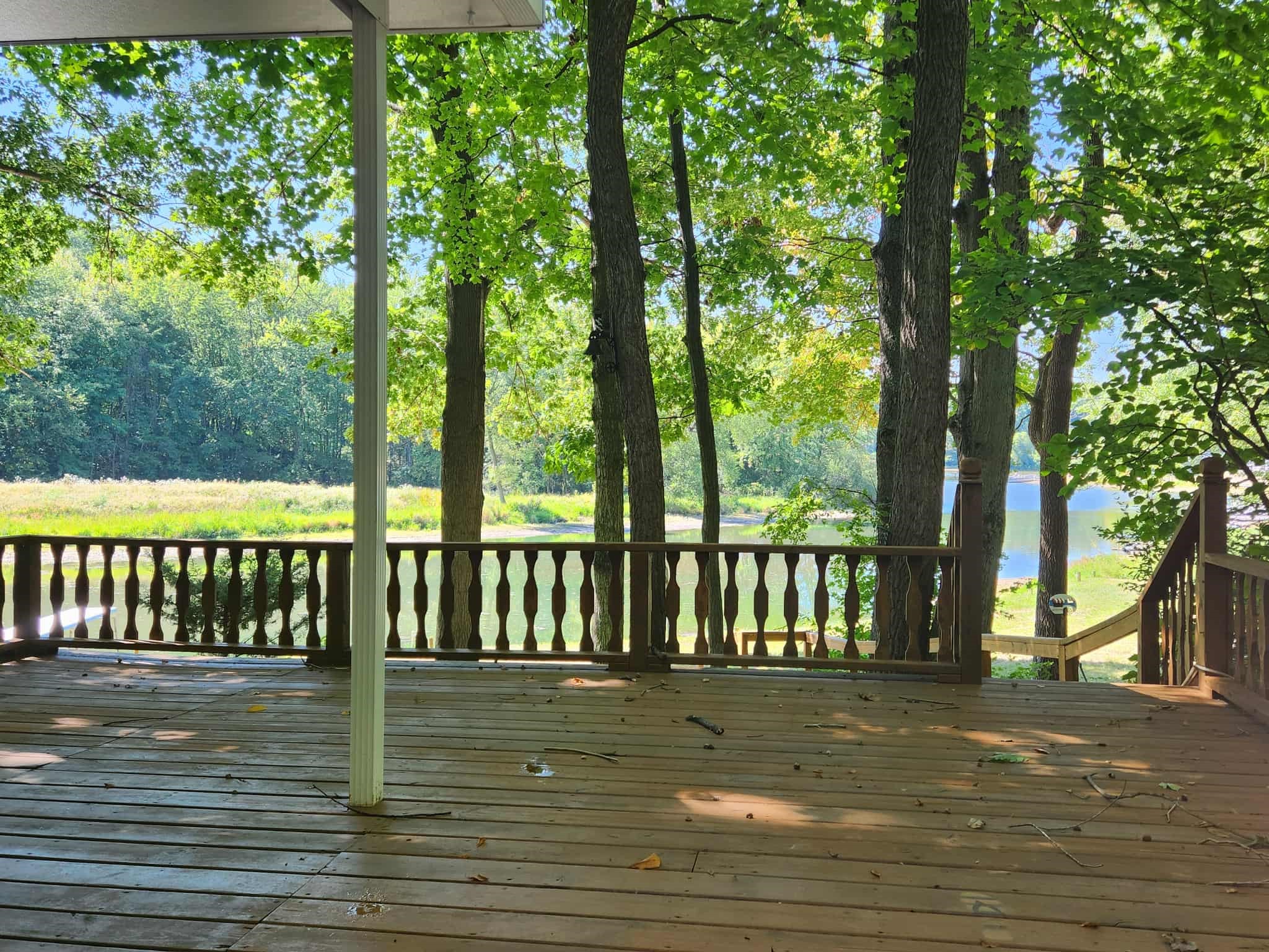 - Attached 24’ x 10’ porch with overhang – perfect for lakefront lounging