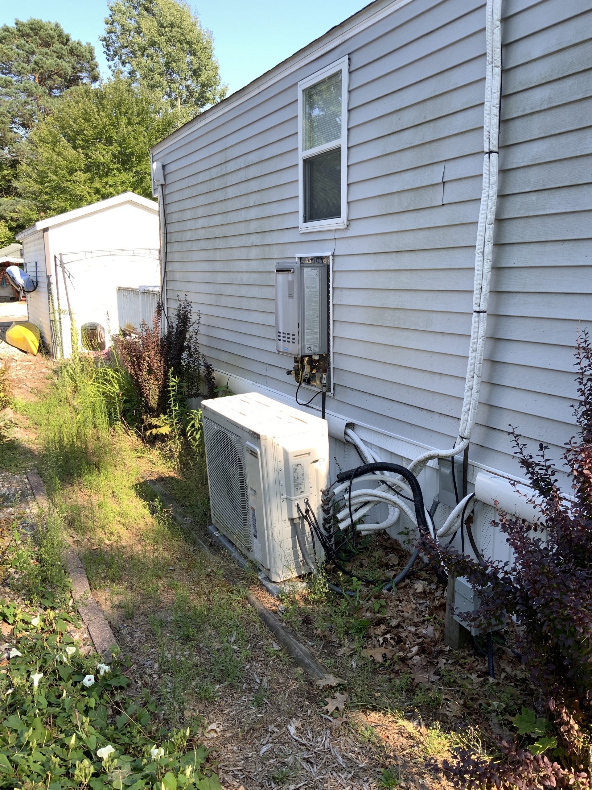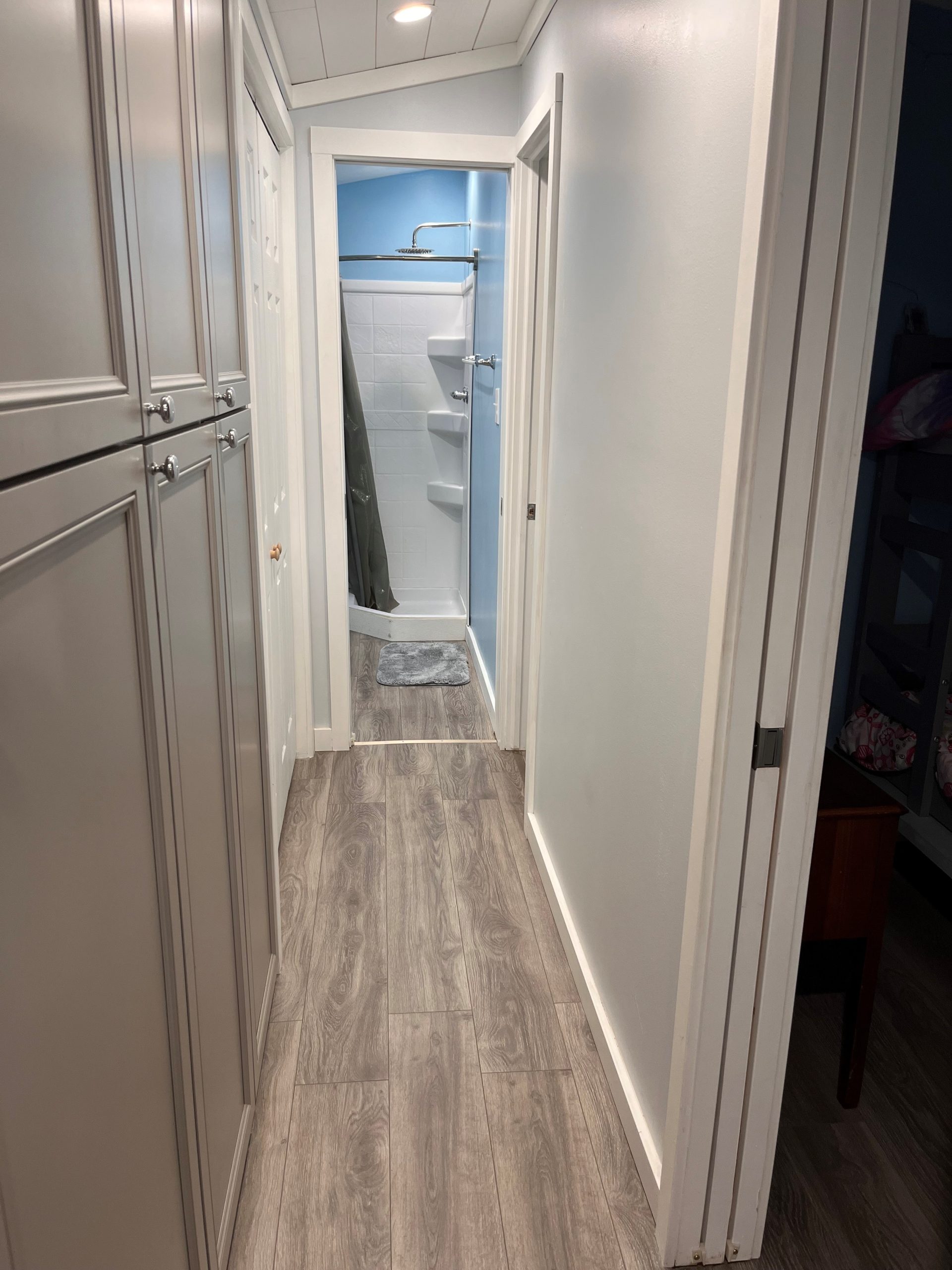 Inside, you’ll find a freshly remodeled kitchen with full-size appliances, a spacious master suite with a large closet, and a second bedroom outfitted with full-size bunk beds—perfect for family or guests. The home features a high-efficiency HVAC system with four mini split heads (three in the trailer, one in the porch) for consistent comfort in every season.