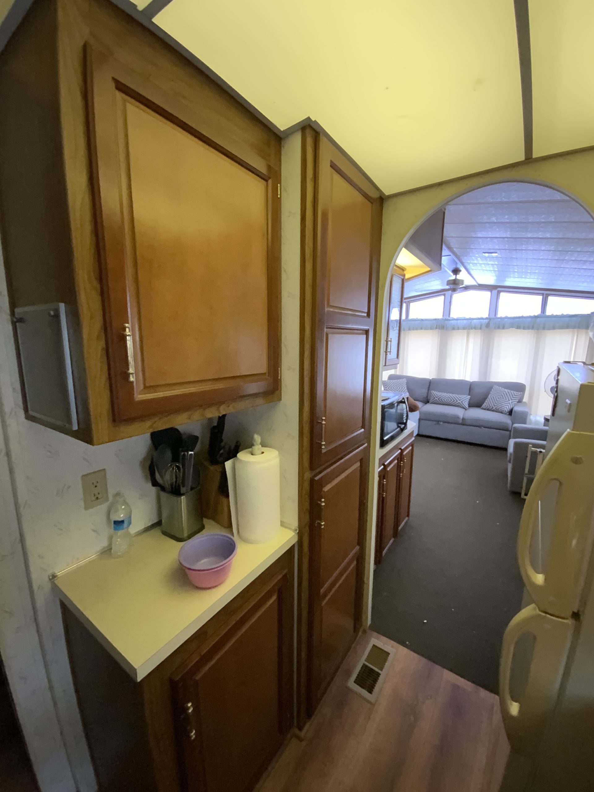Recent upgrades add peace of mind and value, including a new roof with vents and skylight installed last year and a new hot water heater. Inside, you’ll find new plank flooring throughout the kitchen, entry, bathroom, and bedroom, along with new furniture throughout most of the trailer, making this unit move-in ready.