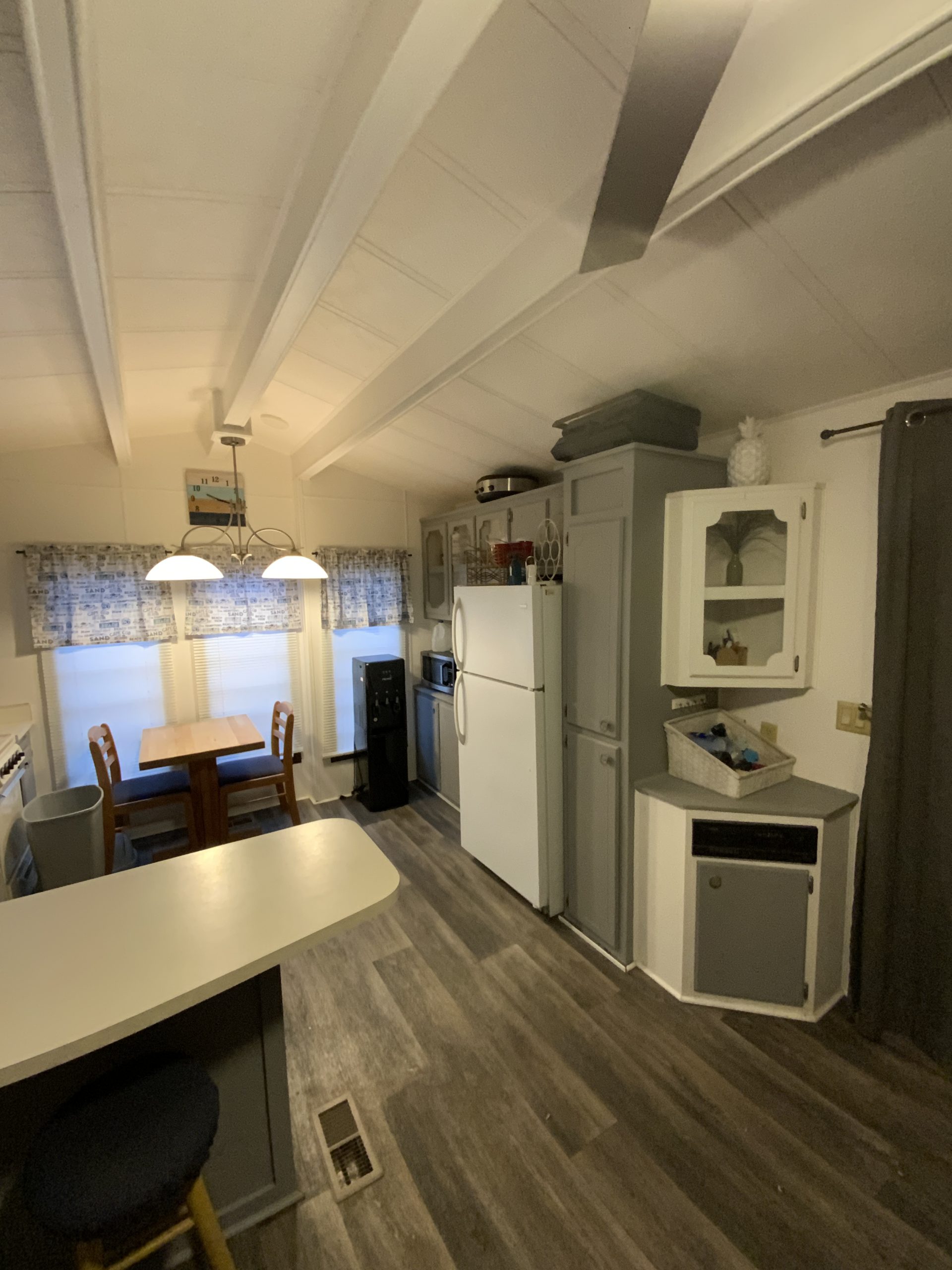 Conveniently located near the water park, pickleball courts, and mini golf, this site offers a fantastic setup for entertaining family and friends. The interior has been freshly painted with new flooring throughout, creating a bright and welcoming space.