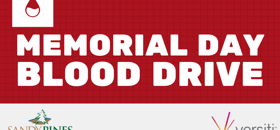 Event Information Give back this Memorial Day Weekend by participating in our Blood Drive at Sandy Pines. Donating blood is a simple way to make a...